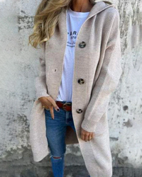 Šiltas megztas ilgas kardiganas su gobtuvu