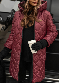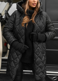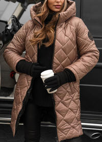 Moteriška madinga dygsniuota ilga striukė su gobtuvu |